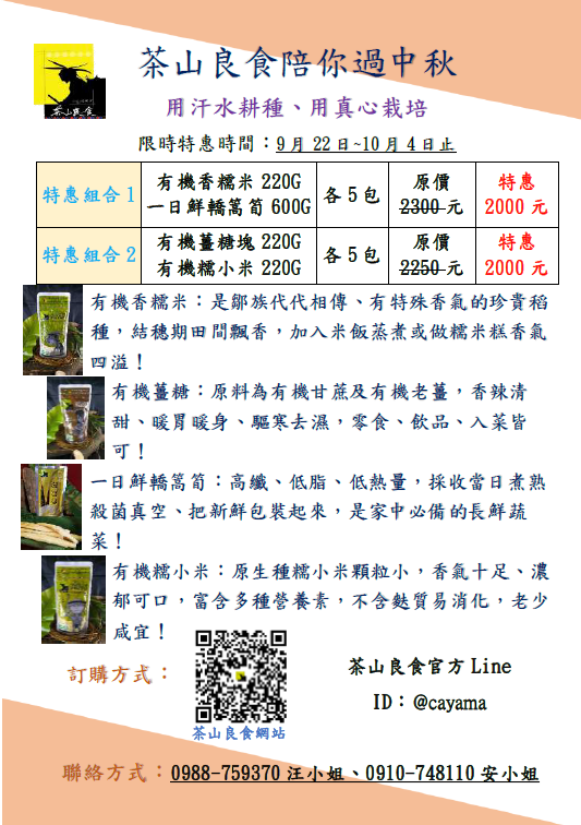 茶山良食陪你過中秋 限時特惠時間:9月22日-10月4日止