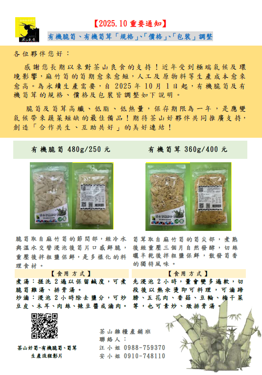 2025.10重要公告-有機脆筍.筍茸規格.價格.包裝調整
